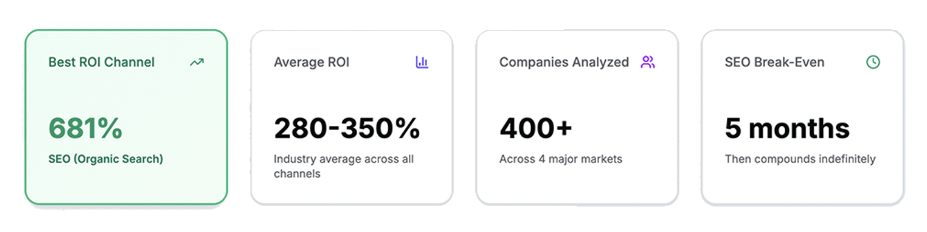 | SEO (Organic Search) | 5 months | 681% | Long term and compounding lead generation |